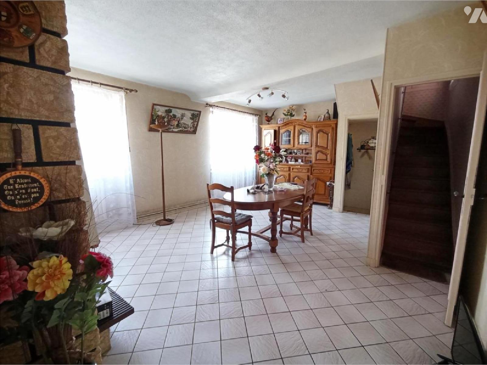 Maison à rénover mitoyenne par deux comprenant : Au rez-de-chaussée : entrée / couloir, cuisine indépendante aménagée et équipée, séjour, dégagement, WC : A l'étage (accès par deux escaliers de la maison) : palier, salle de bains et douche, trois chambres en enfilade, WC (dans une chambre), bureau ; Grenier au-dessus. Cave, chaufferie, buanderie. Terrain sur l'arrière 340m².+ parcelle de jardin 353m² non attenante avec garage. Logement à consommation énergétique excessive Les informations sur les risques auxquels ce bien est exposé sont disponibles sur le site Géorisques : www.georisques.gouv.fr
